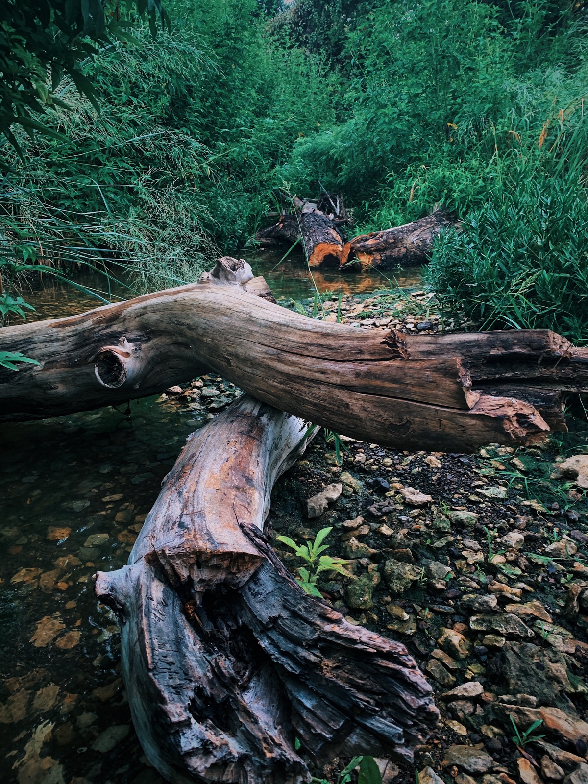 Log across the creek on the Chisenhall Trails in Burleson, Texas.